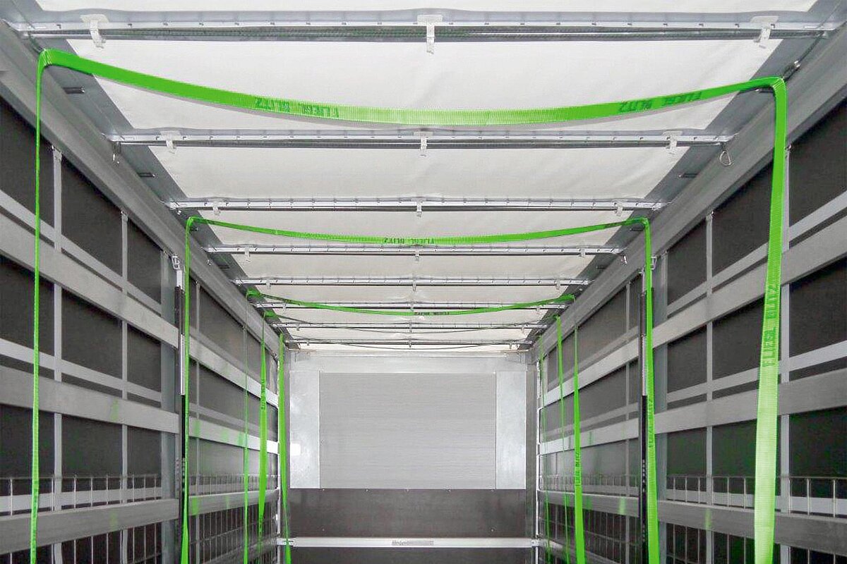 The integrated Easy Fix belt lift system is also integrated in the roof crossbars. No parts protrude into the load compartment. This makes the belt lift indestructible. There are no repairs and therefore no costs and downtimes. Belts are not twisted - the entire system is absolutely user-friendly. The Fliegl Easy Fix belt lift enables the fastest possible strapping and unstrapping of the load.