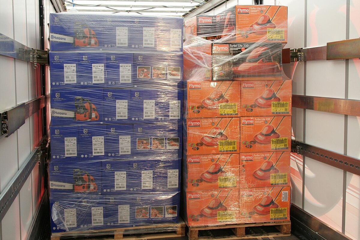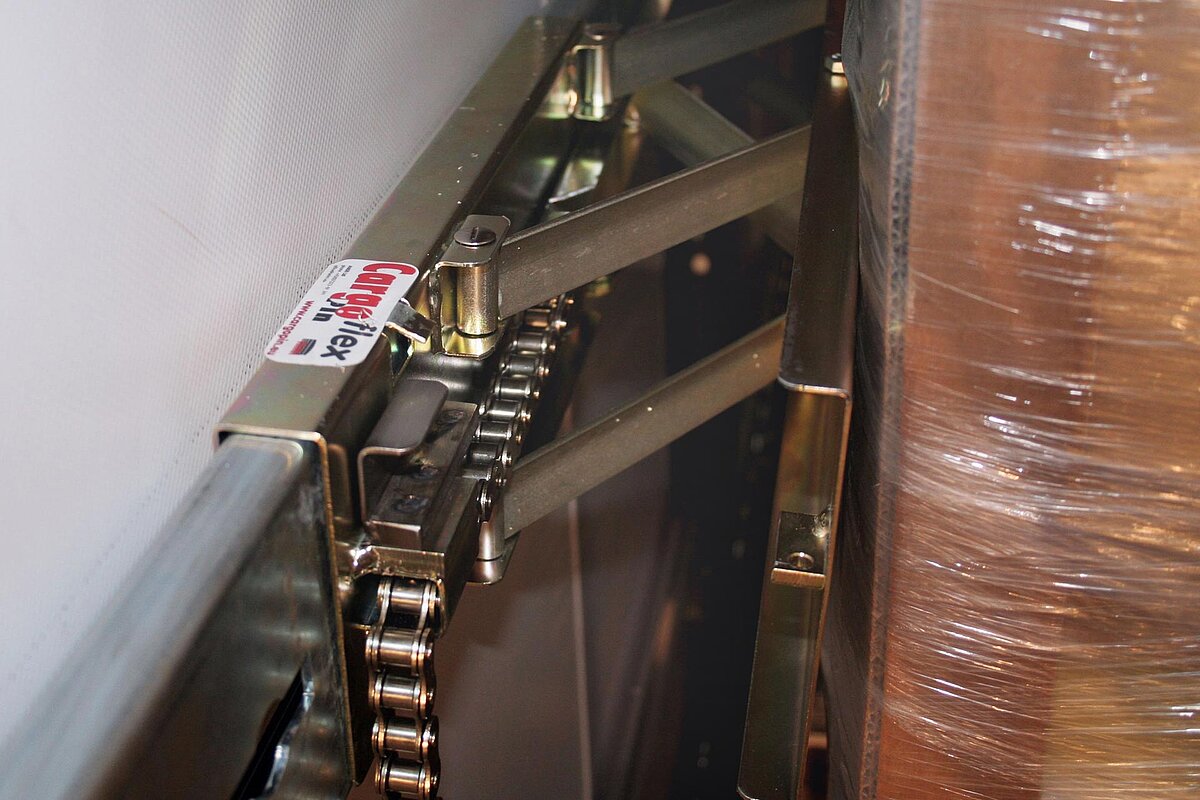 Loads that do not achieve a tight fit or cannot be lashed down are effectively clamped with the Fliegl Vario Flex system. Vario Flex is placed on the existing wooden or aluminium slats. The occurring forces are transferred to the side wall. The Vario Flex clamps bridge up to 48 cm of the load width.