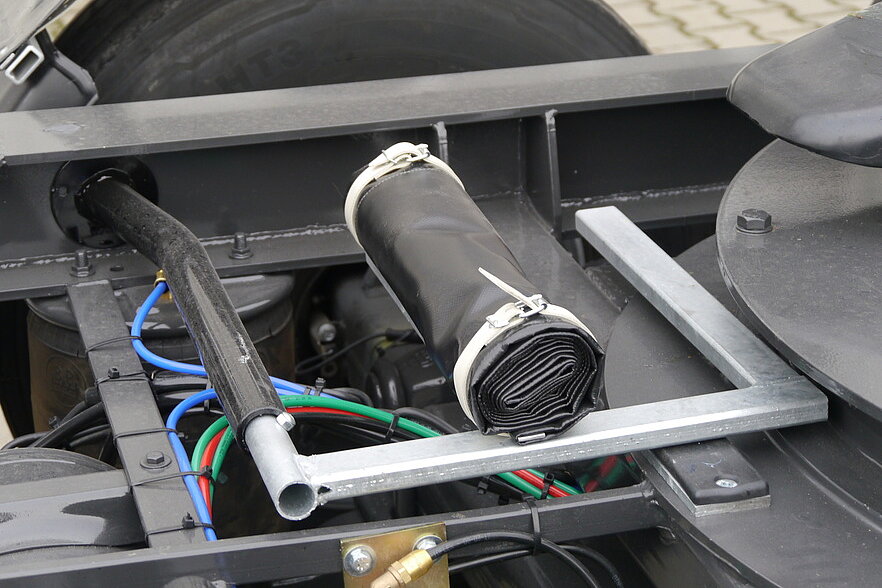 - Removable tarpaulin between the mudguards to protect against splashing water