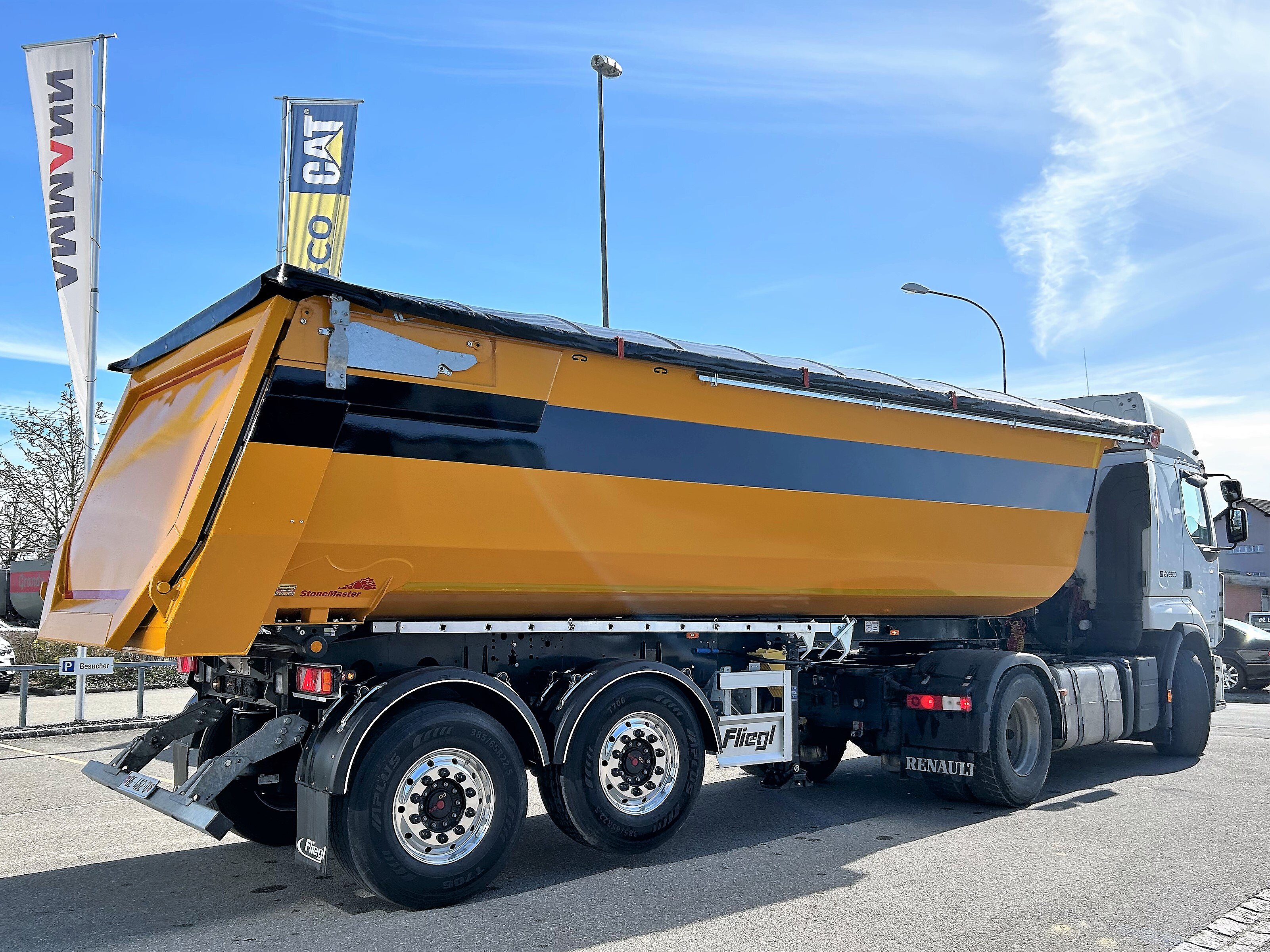 Das überzeugte auch den Kunden Toggenburger AG Winterthur aus der Schweiz, die den Zweiachs-Kippsattelauflieger mit 27-Kubimeter-Stahlmulde über unseren Vertriebspartner Avesco AG Langenthal kürzlich bei Fliegl bestellt und mit einigen Extras hat ausstatten lassen. „Das einzigartige Leergewicht war natürlich auch ausschlaggebend für den Kauf“, sagt Produktmanager Florian Zwahlen von Avesco.
