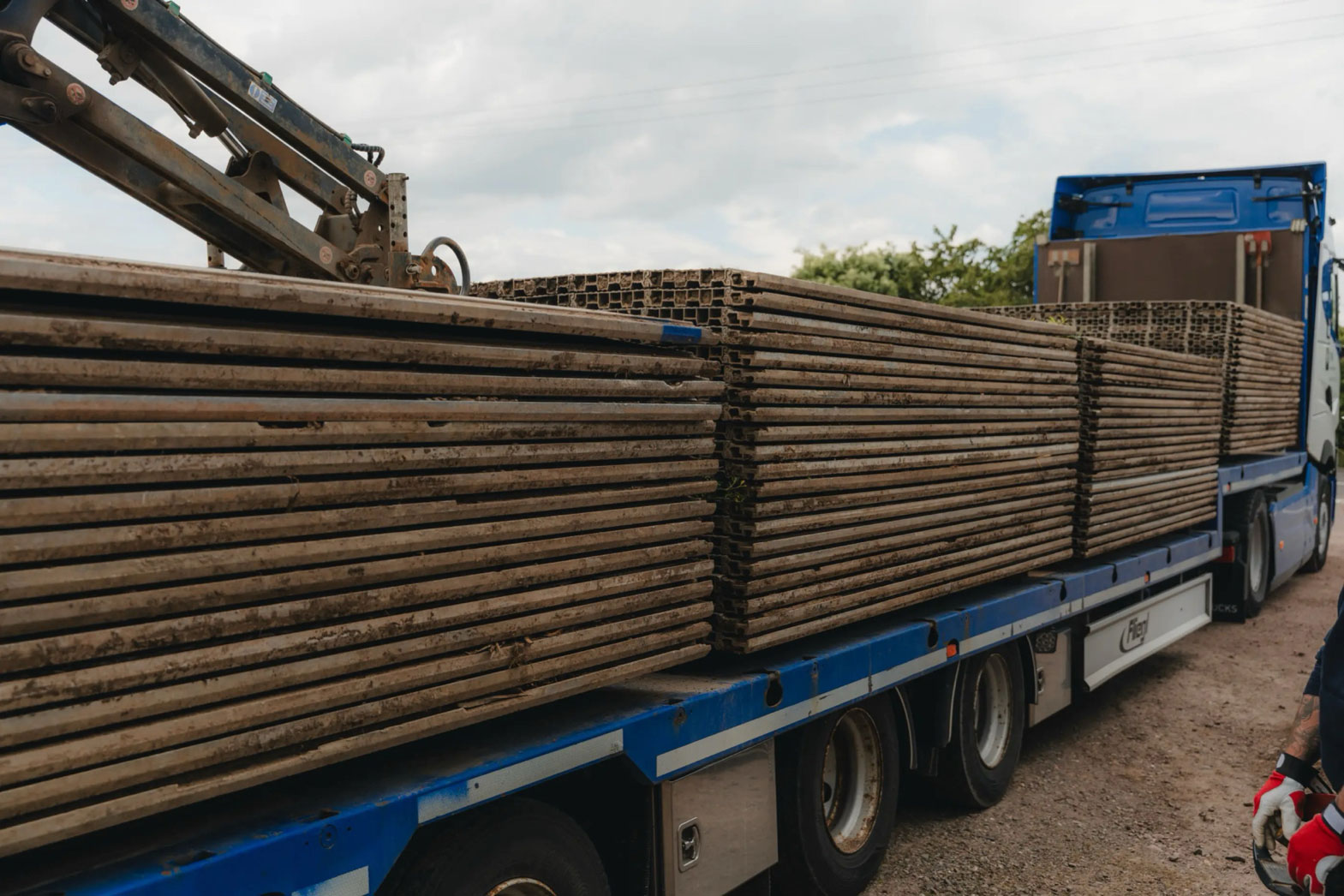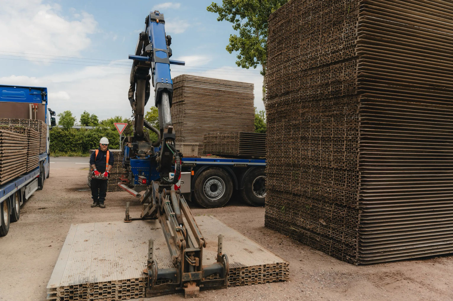Der längs verlegte Hartholzboden aus robustem finnischem Holz ist 30 Millimeter stark, die sogenannten Omega-Profile darunter sorgen beim SDS 410 für die hohe Punktbelastbarkeit. Beim SDS 390 Plateau-Sattel ermöglichen die längs laufenden Unterzüge eine Staplerachslast von 7.100 Kilogramm.