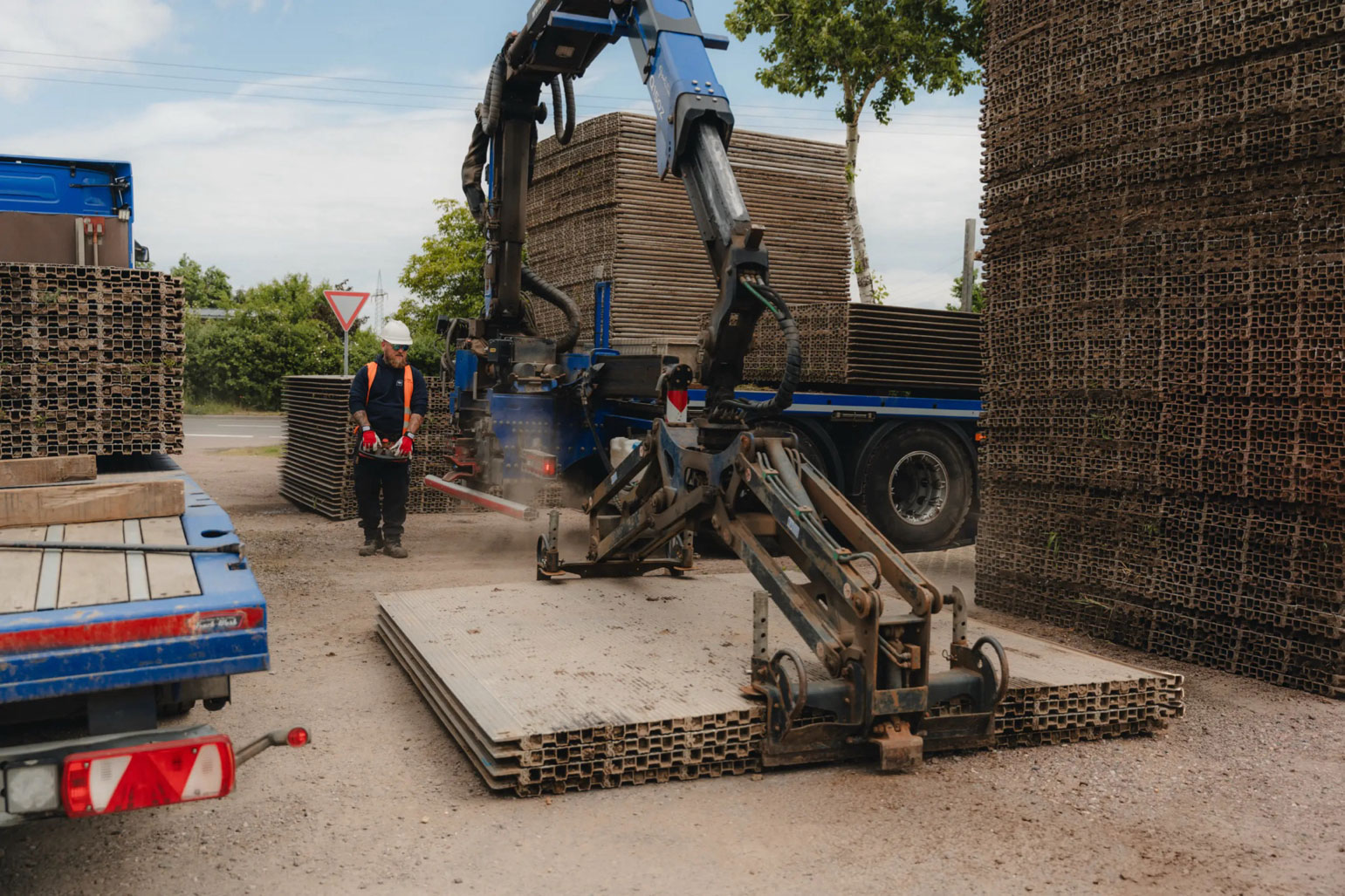 Dank der 900 Millimeter langen Heckanschrägung ergibt sich beim Tieflader in Kombination mit den 2400 Millimeter langen Alu-Rampen ein flacher Auffahrwinkel. „Damit können wir auch Gabelstapler laden und sind so unabhängig von anderen Speditionen. Auch den Bagger mit der Plattenzange transportieren wir mit dem Auflieger“, erklärt Thomas Thumulla. Spanngurte oder -Ketten lagern bei Nichtgebrauch in den beiden Edelstahl-Staukästen oder im großen seitlichen Staufach.
