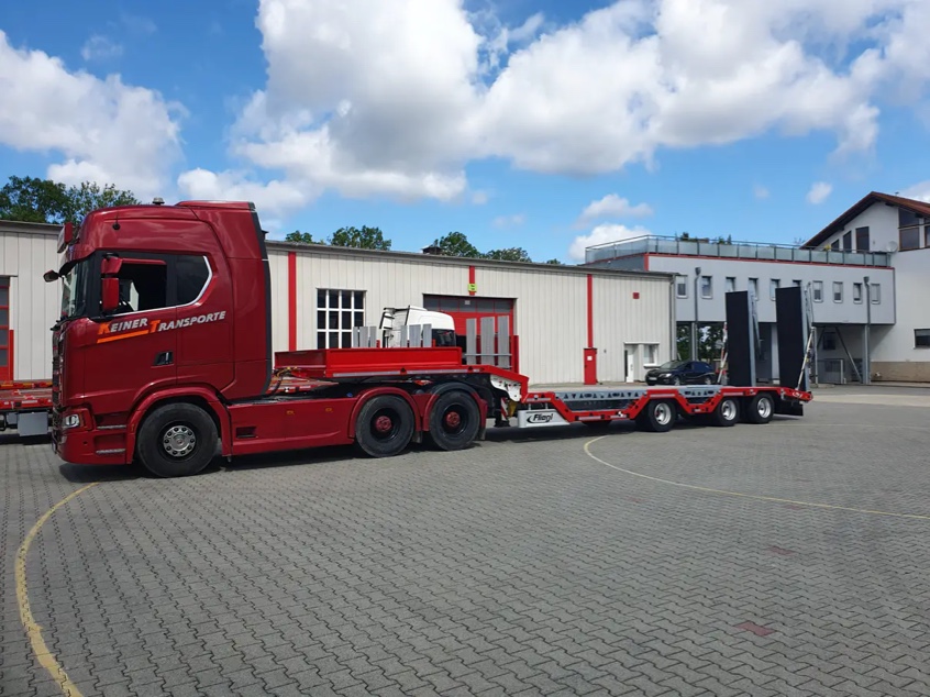 Ob Asphaltfertiger, Kettenbagger oder Walzen – Jens Keiner und seine Mitarbeiter transportieren jede Art von Baumaschinen. Zu den bereits vorhandenen drei Tiefladern kam kürzlich der SDS 470 T von Fliegl in den Fuhrpark. „Wir hatten schon einmal einen Auflieger von Fliegl und waren zufrieden damit, außerdem stimmt der Preis und Fliegl ist wie wir auch in Thüringen ansässig“, erklärt Firmenchef Jens Keiner.