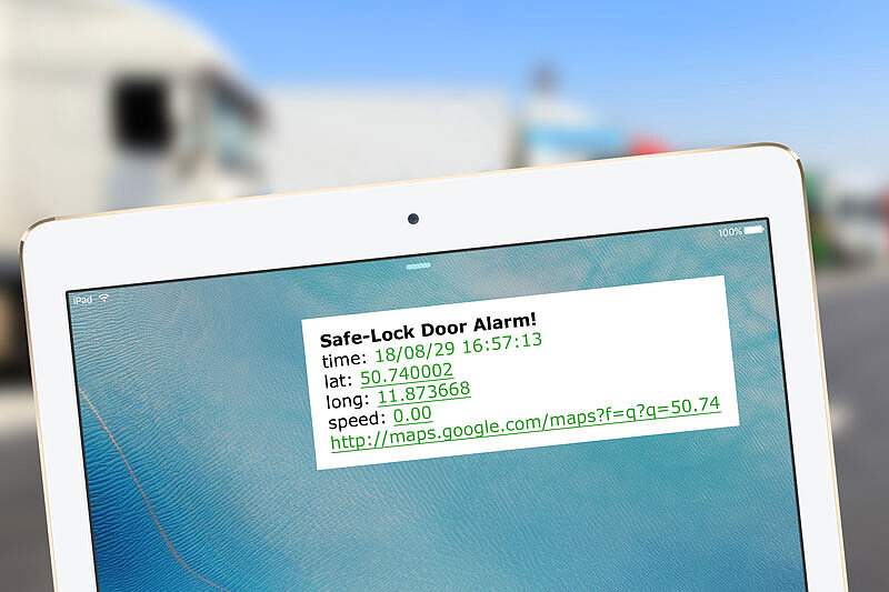 Volle Kontrolle über den Laderaum bietet Fliegls Safe-Lock. Es überwacht I-Lock mittels eines (telematischen) Systems zum Diebstahlschutz. Ein Sensor am Griff erfasst den Status der Tür (geöffnet/geschlossen) und meldet ihn an ein Modul, das bei Bedarf sofort optischen und akustischen Alarm auslöst, der jederzeit per Funkfernbedienung deaktiviert werden kann.