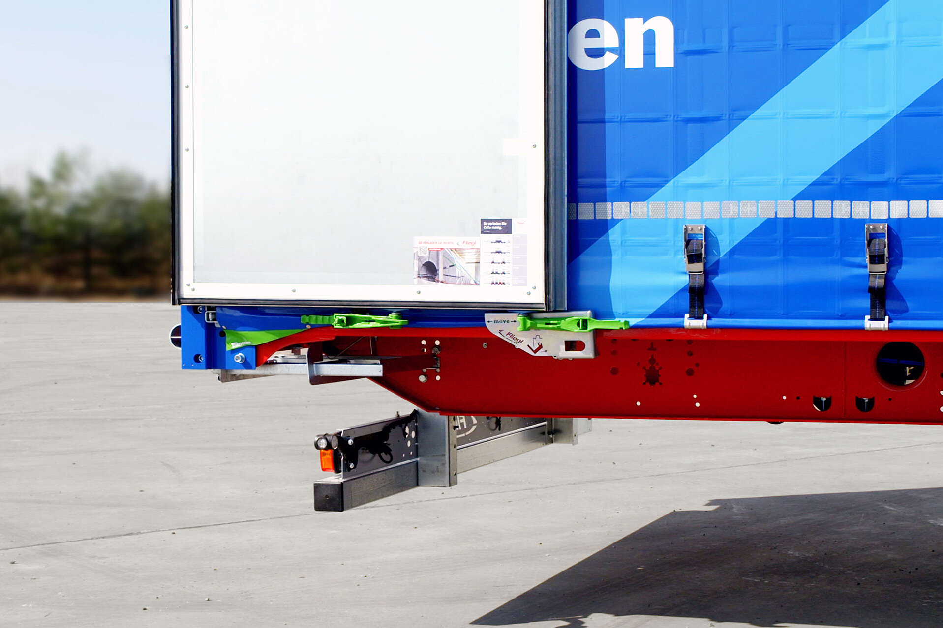 Trailer sind schließlich die perfekten Werbeträger und das auf Seitenplane und Heck. Um diese zu schützen, arretiert das Fliegl D-Lock die Hecktüren mit ausreichend Abstand, um Scheuern und Zerkratzen zu vermeiden. Ein positiver Nebeneffekt ist, dass D-Lock somit für eine freie Sicht beim Rangieren sorgt. Es ist einfach zu bedienen, wird nur hoch geklappt und ist bestens auf den Türverschluss I-Lock abgestimmt.
